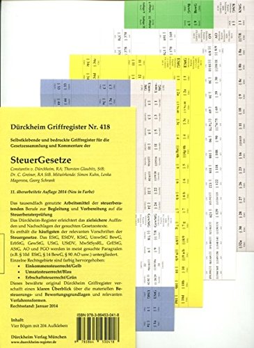 Buchtitel : SteuerGesetze Griffregister Nr. 418 (2014): 204 farbige, selbstklebende und bedruckte Griffregister