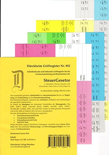 Buchtitel : SteuerGesetze Griffregister Nr. 852 (2016/2017): 256 selbstklebende und farbig bedruckte Griffregist